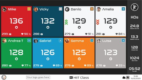 Tracking dei colpi in tempo reale per una competizione vivace nelle tue classi di allenamento.