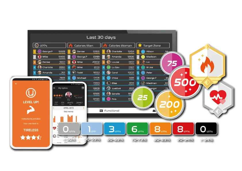 Con il sistema di livelli e medaglie di Uptivo, puoi premiare i tuoi clienti per ogni allenamento e programma completato. Offri loro un’esperienza coinvolgente e gratificante nel fitness, con oltre 10 livelli di difficoltà per tenere traccia dei loro progressi e spingerli a migliorare sempre di più.